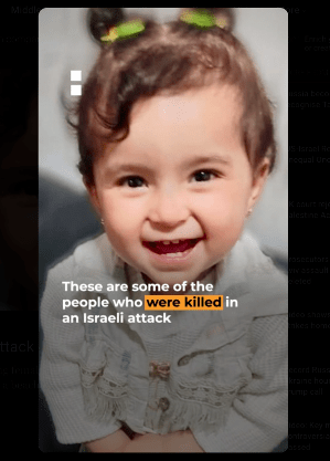 Bild: Malak Mosleh. Quelle: Bildschirmfoto aus dem Video https://www.aljazeera.com/video/newsfeed/2025/7/3/the-victims-of-israels-attack-on-a-gaza-beach-cafe#flips-6375210786112:0