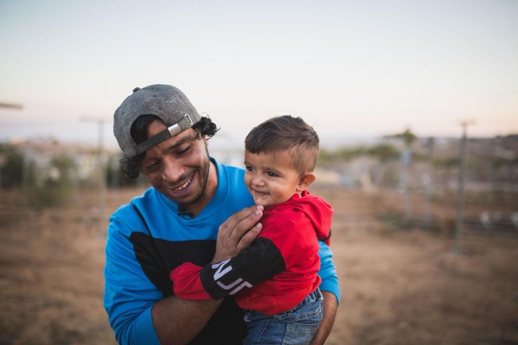 Bild: Odeh Hadalin, Menschenrechtsaktivist aus Umm al-Khair, mit seinem Sohn Watan, 2024, ermordet am 28. Juli 2025 von einem israelischen Siedler. Quelle: https://en.wikipedia.org/wiki/Killing_of_Awdah_Hathaleen
